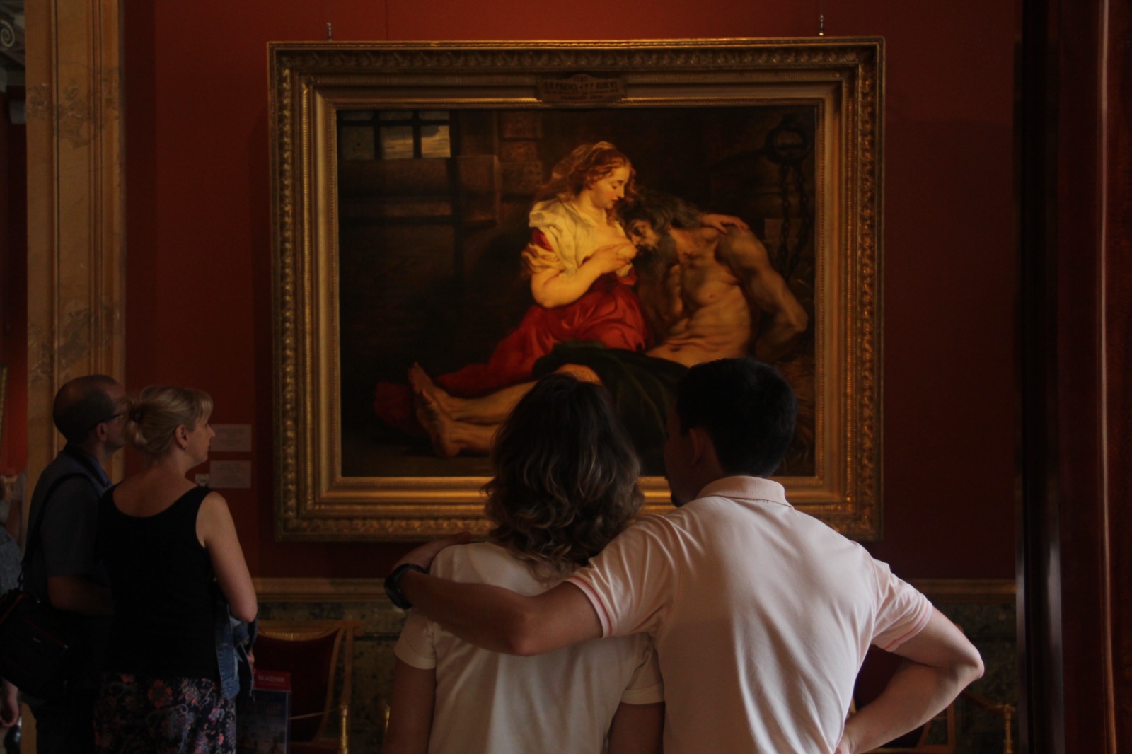 Gambar : Pengunjung memerhatikan dan menikmati koleksi yang ada di Museum Hermitage, Saint Petersburg, Rusia. (Postmodum)